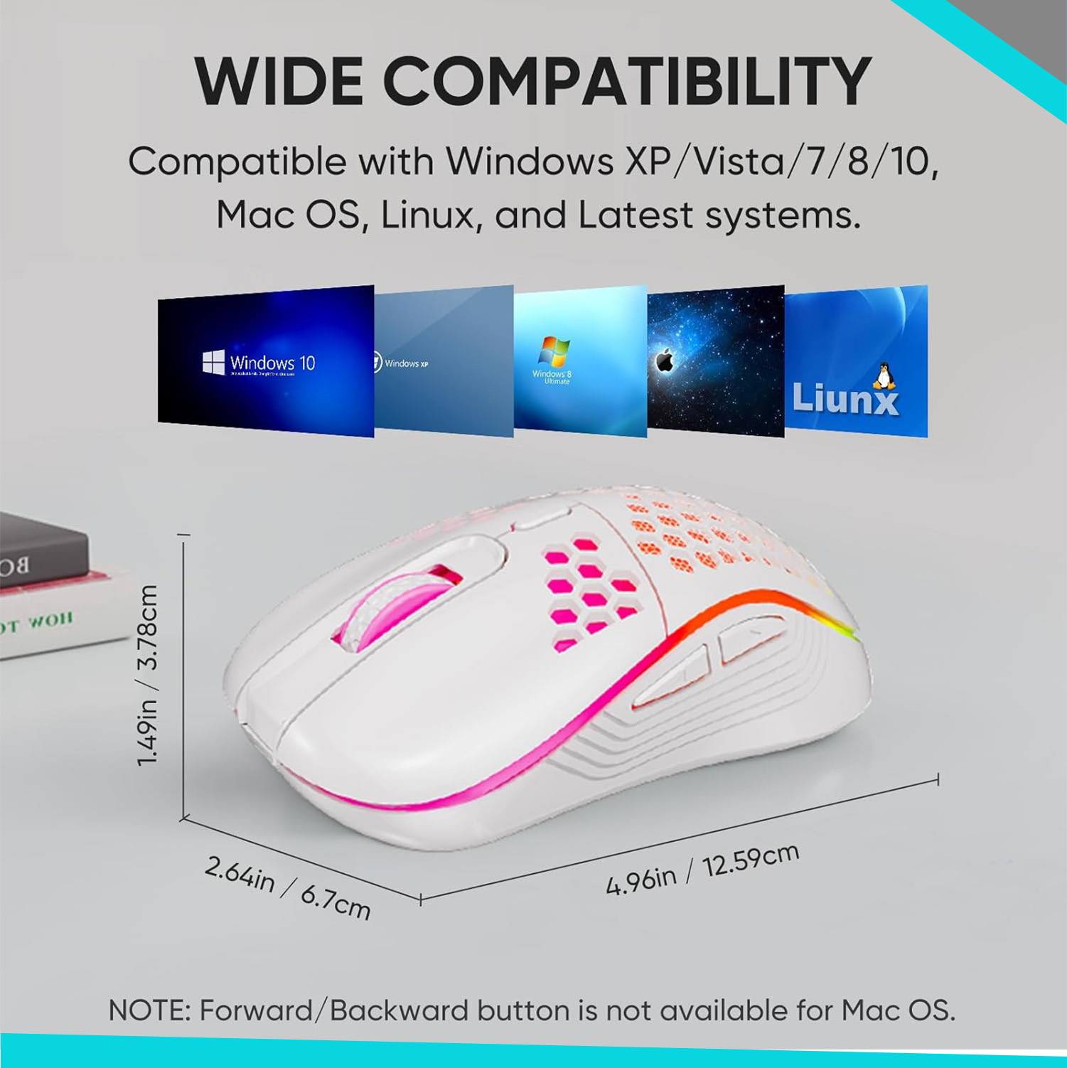 Mouse Gamer Inalámbrico MELOGAGA RGB Blanco – Diseño Panal.