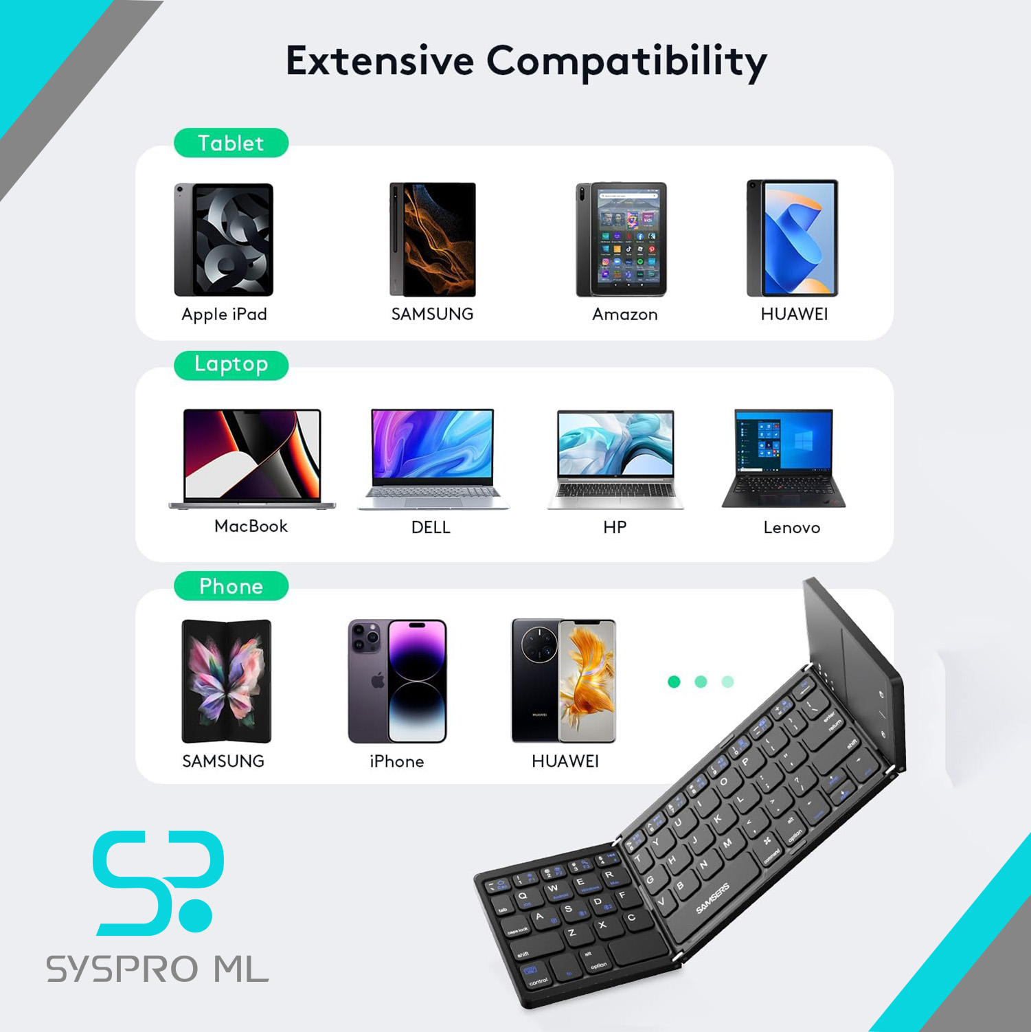 Teclado Bluetooth plegable multi-dispositivo con batería recargable