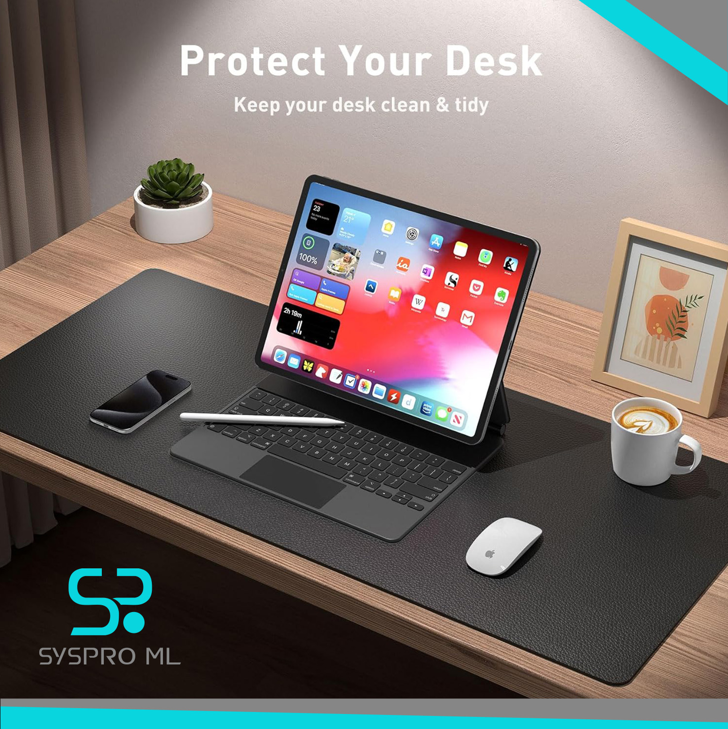 🖥️ Protege tu escritorio con estilo. Esta alfombrilla de piel sintética cubre una gran superficie, resguardando la mesa de arañazos y derrames.
